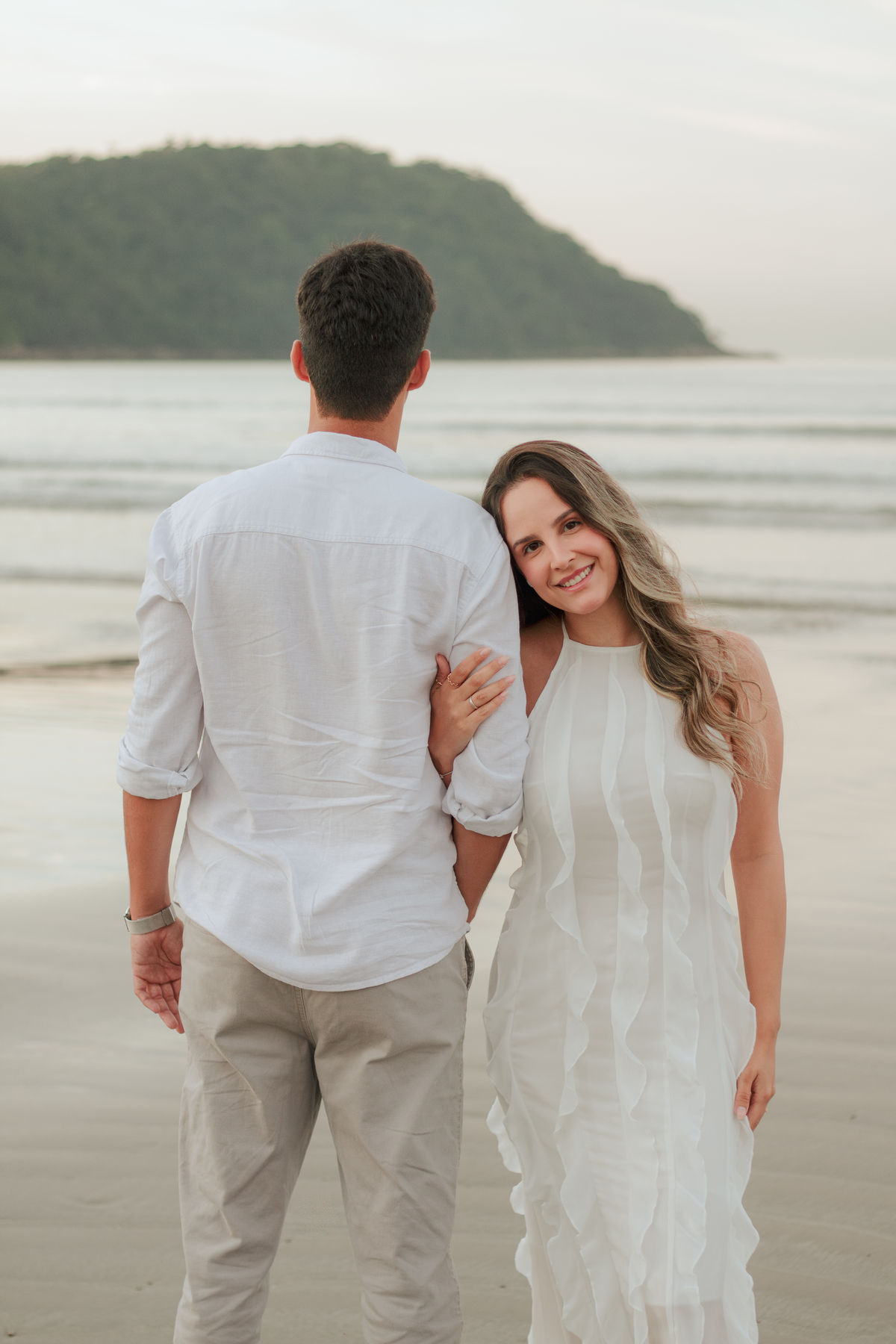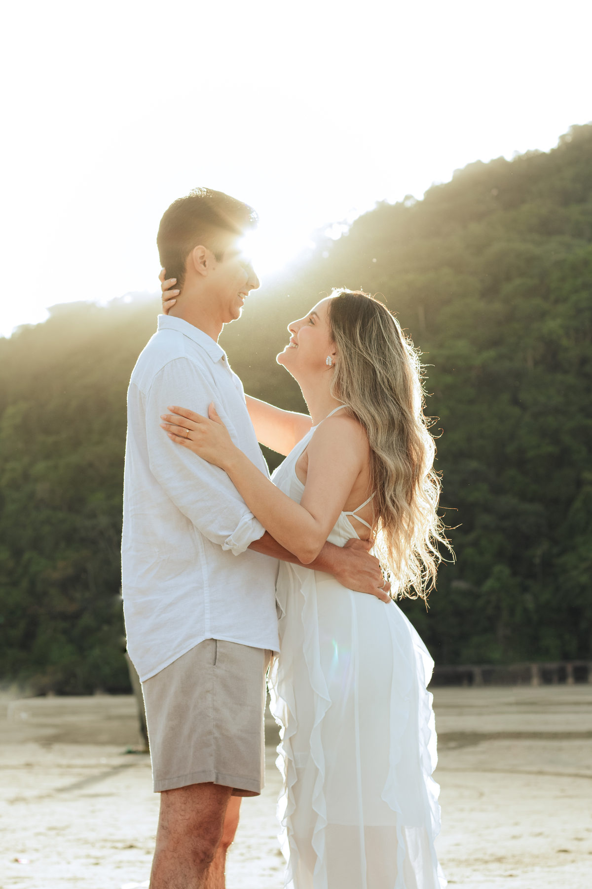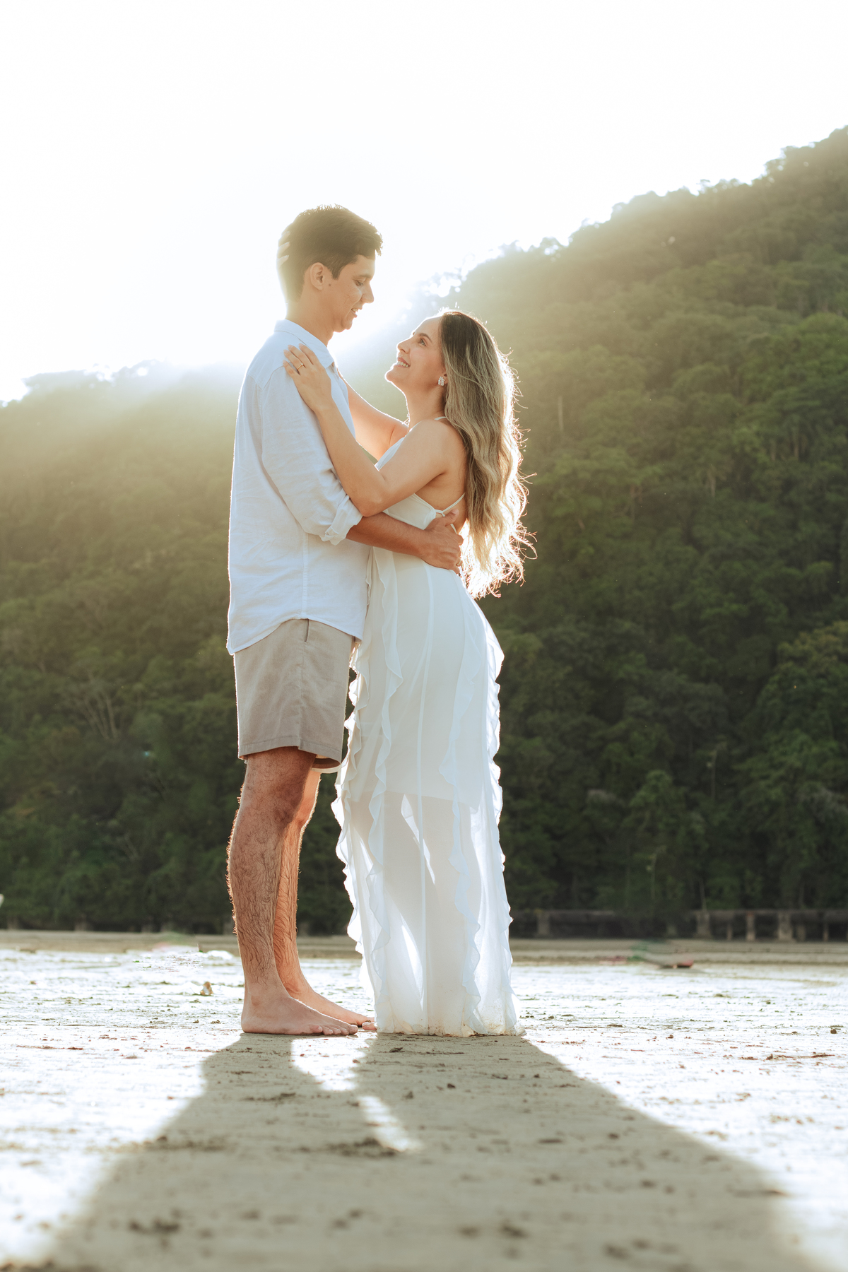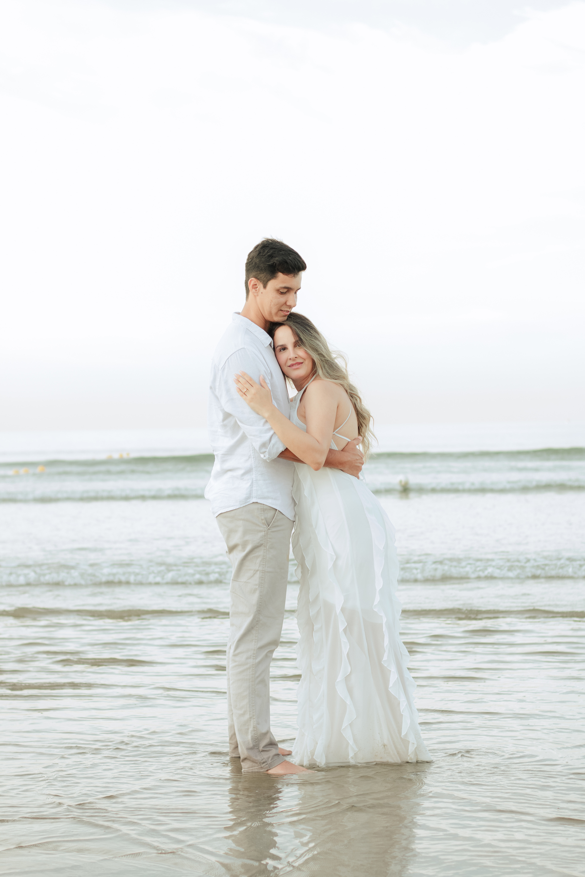 Esse tipo de ensaio pré wedding na praia permite que o casal viva o momento com mais calma, menos movimento e mais conexão, criando fotos naturais e cheias de significado.