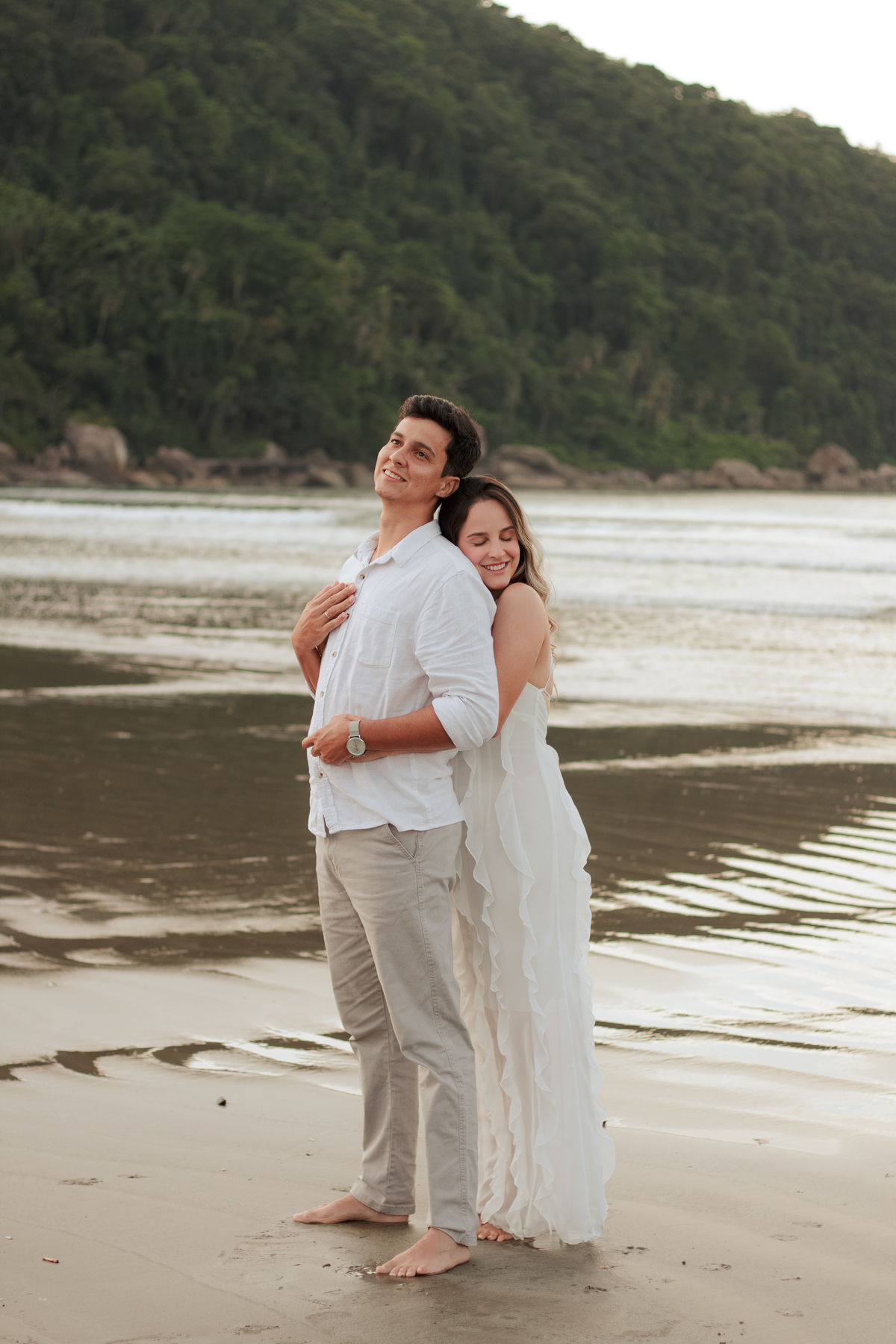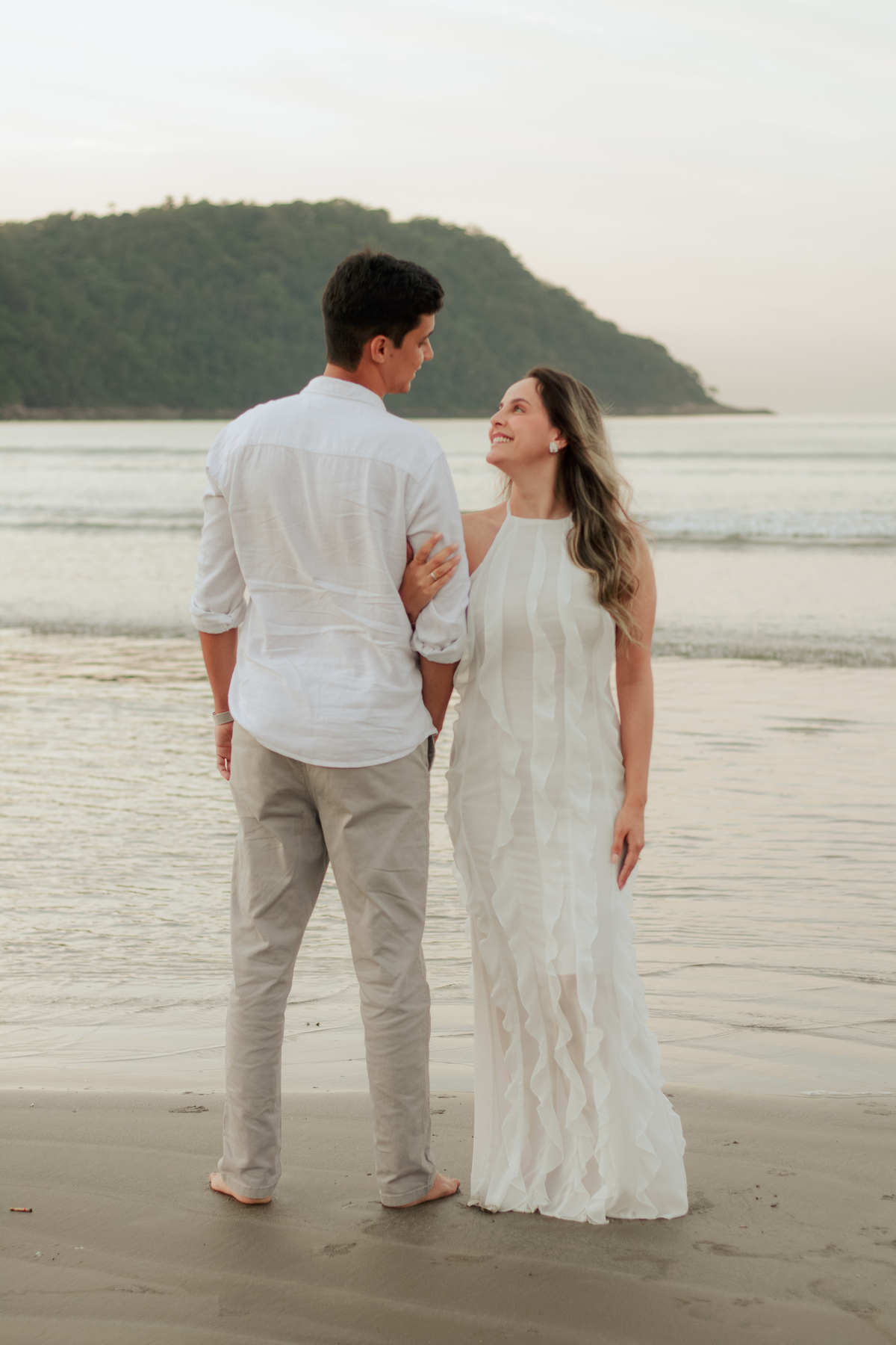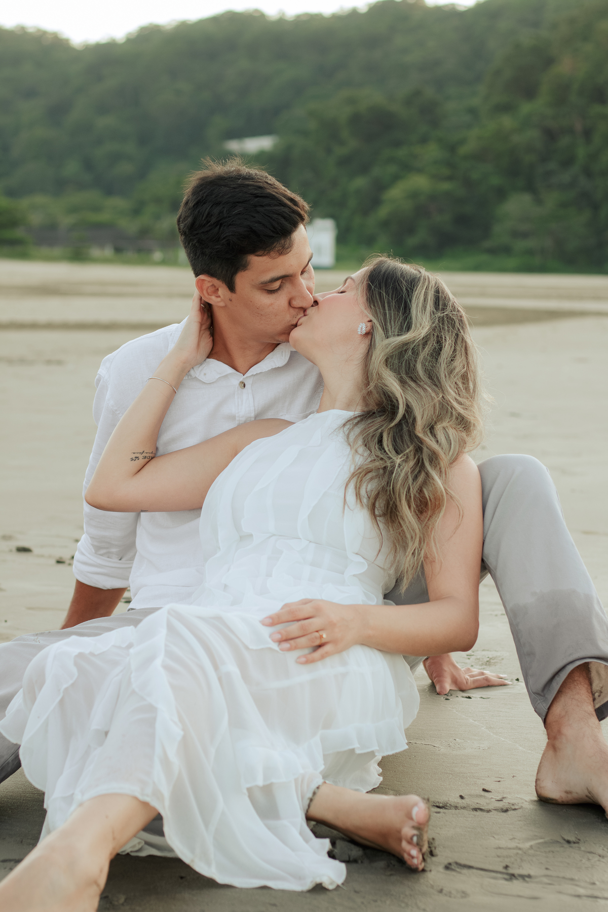 Esse tipo de ensaio pré wedding na praia permite que o casal viva o momento com mais calma, menos movimento e mais conexão, criando fotos naturais e cheias de significado.