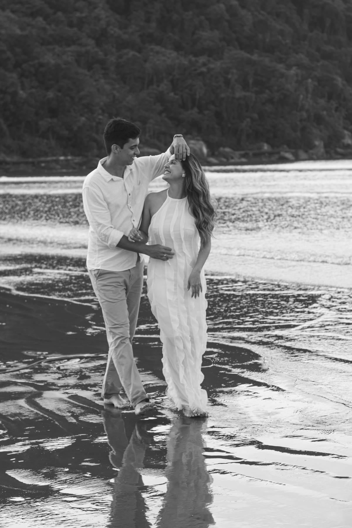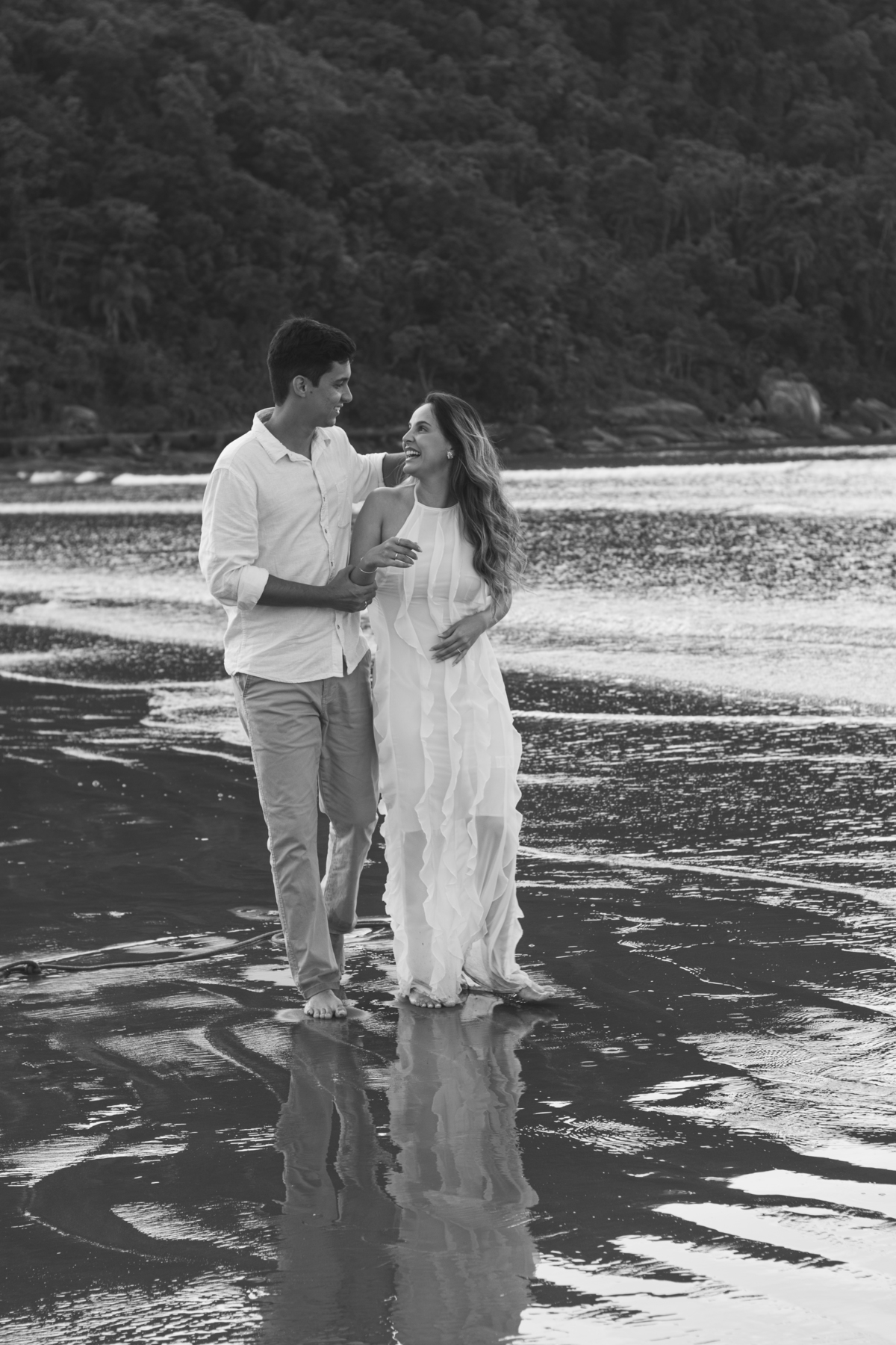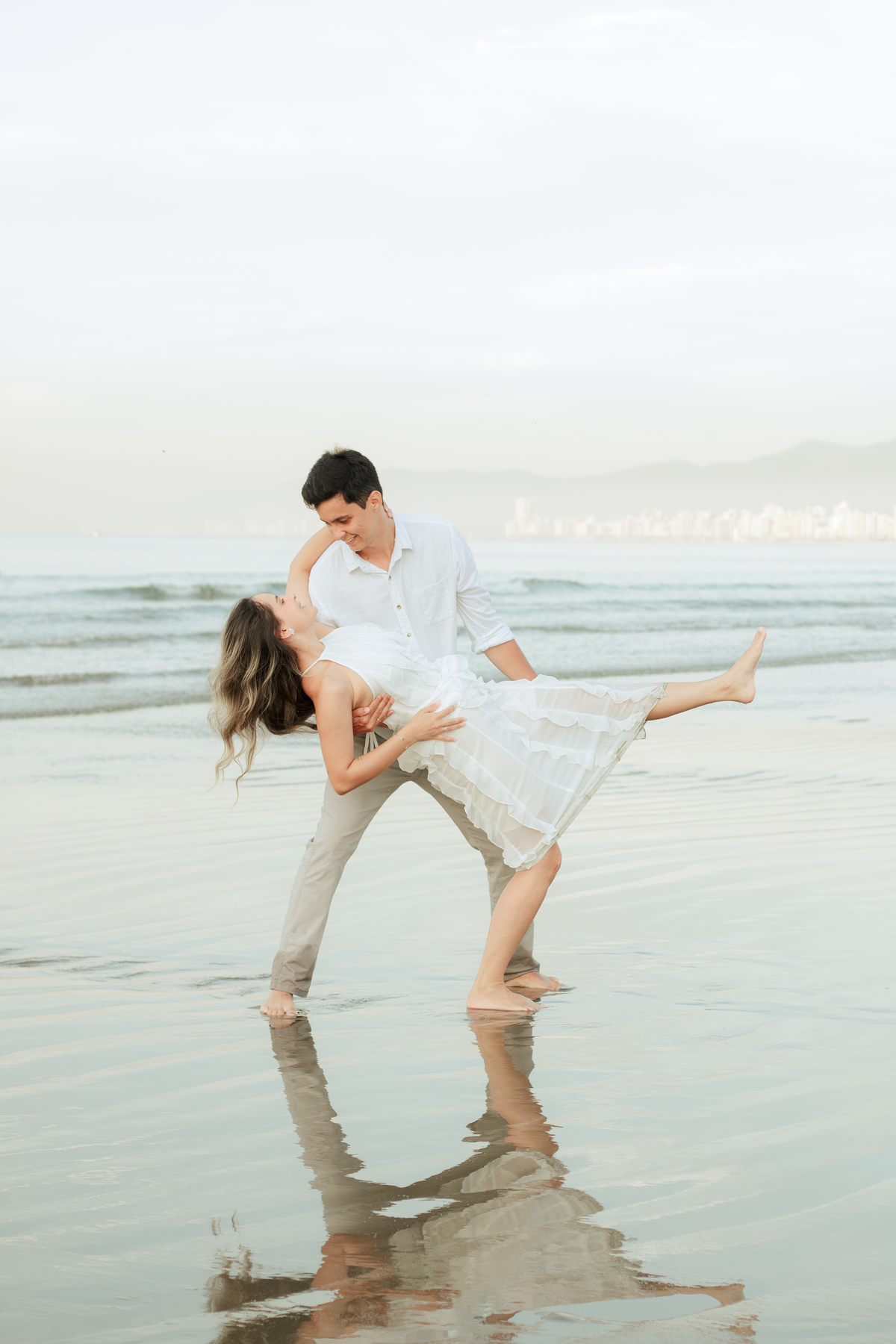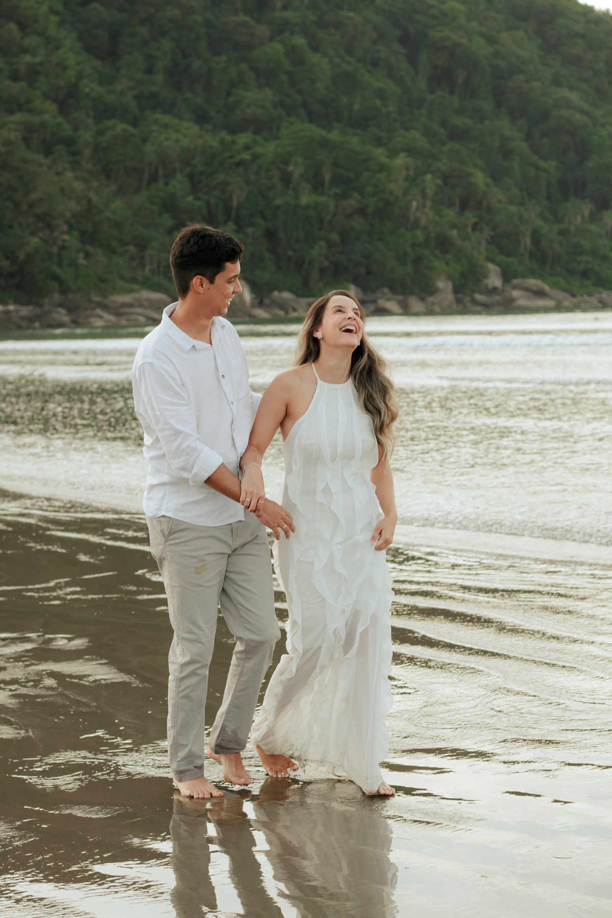 Esse tipo de ensaio pré wedding na praia permite que o casal viva o momento com mais calma, menos movimento e mais conexão, criando fotos naturais e cheias de significado.