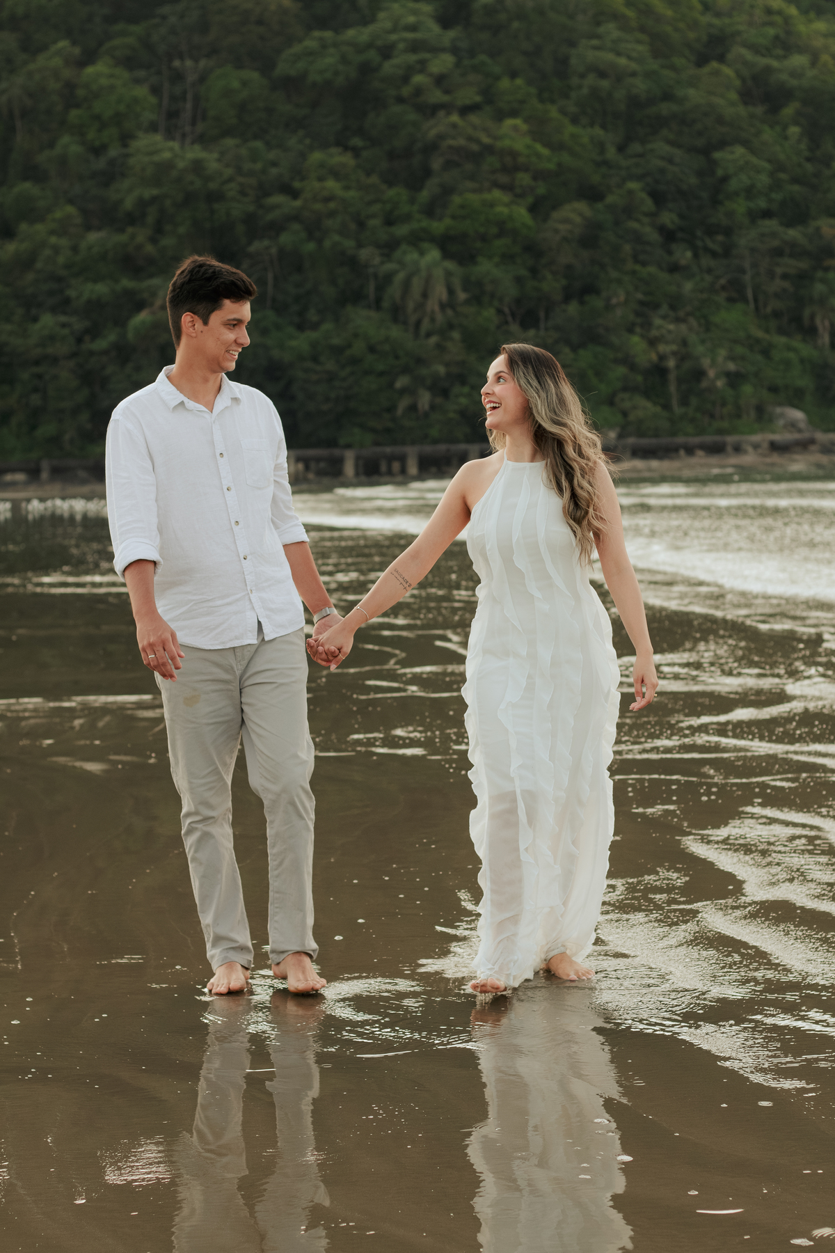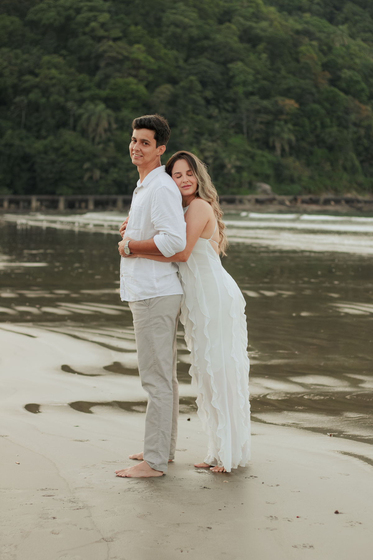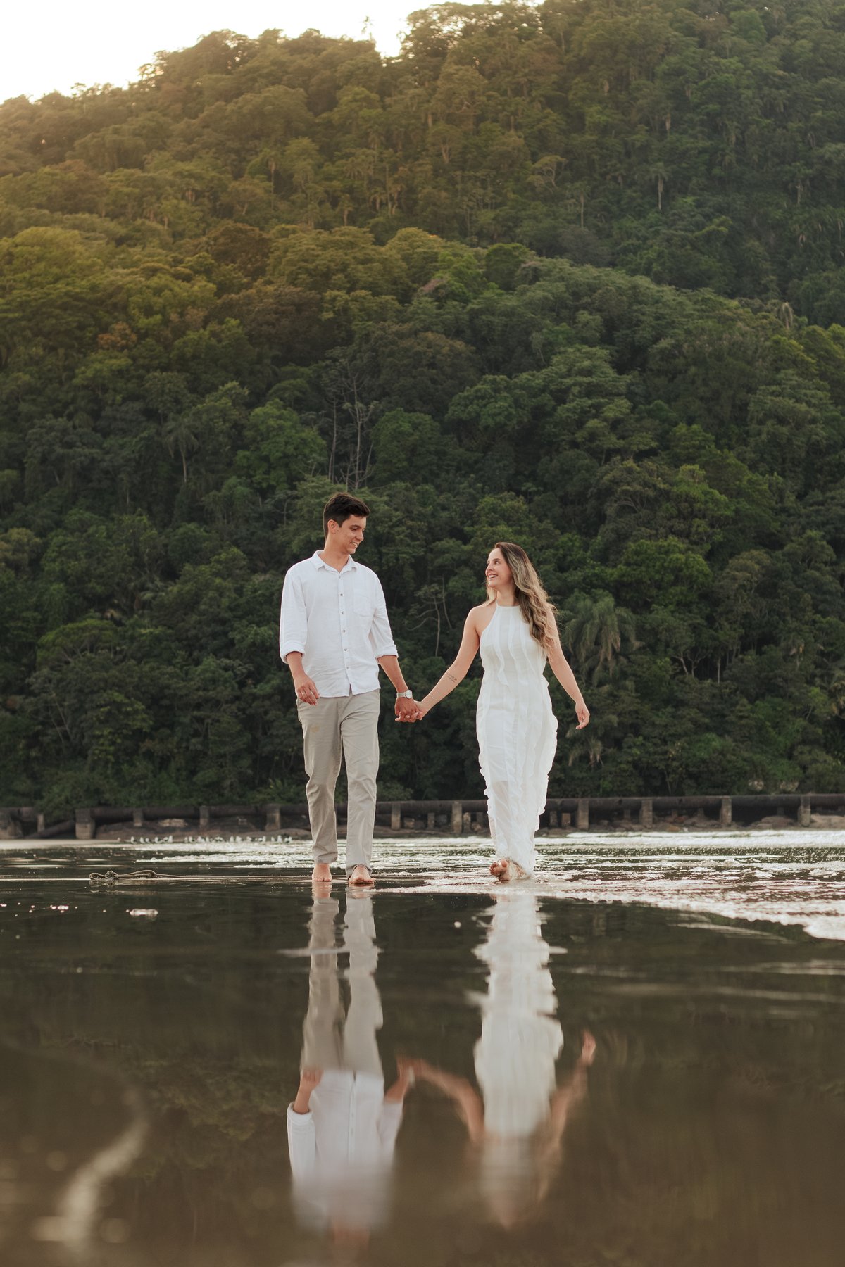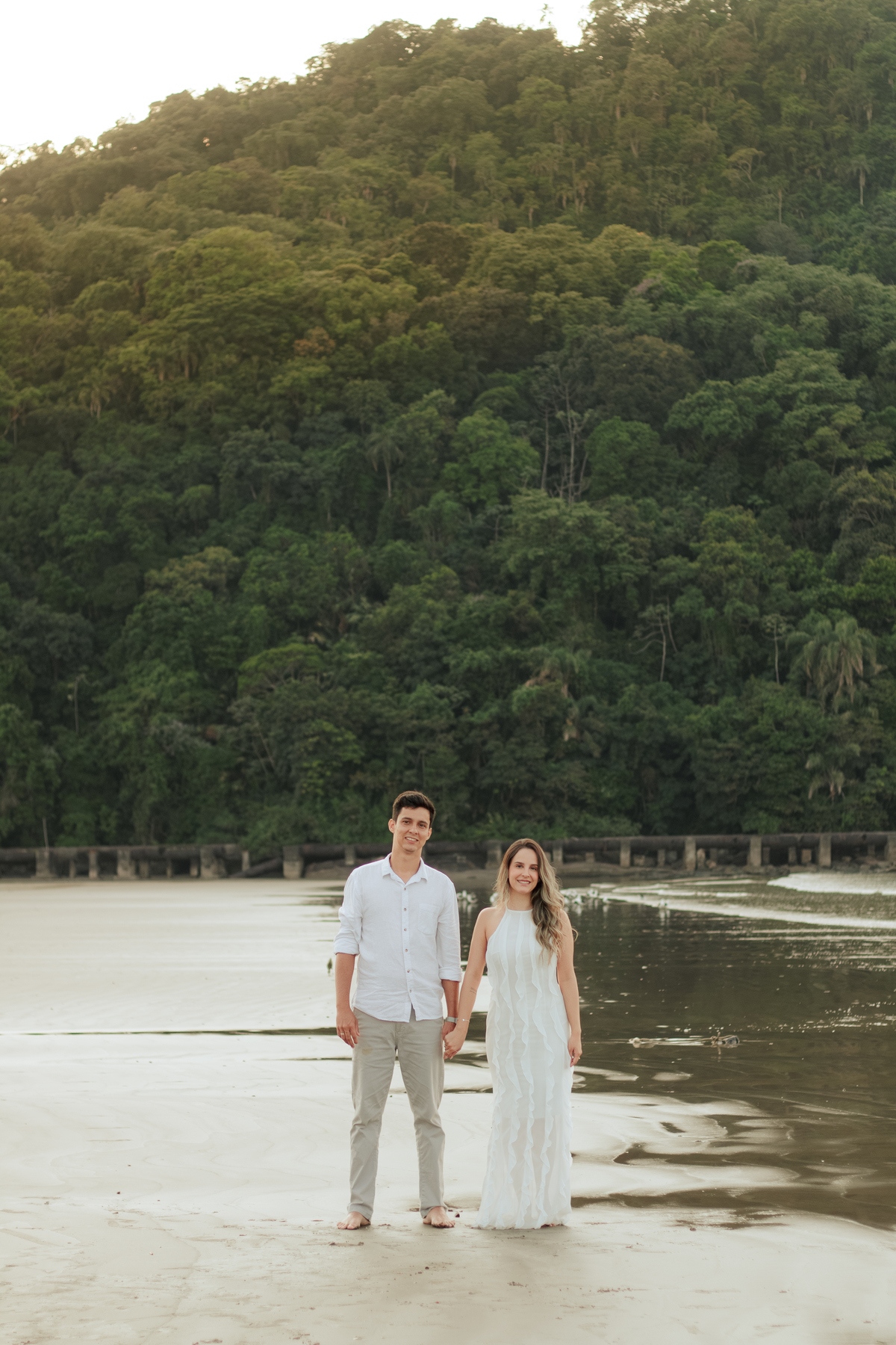 O ensaio pré wedding da Bruna & Humberto aconteceu no nascer do sol na Praia do Canto do Forte, em Praia Grande, um dos cenários mais procurados por casais que buscam um ensaio leve, com luz natural e clima tranquilo na Baixada Santista.